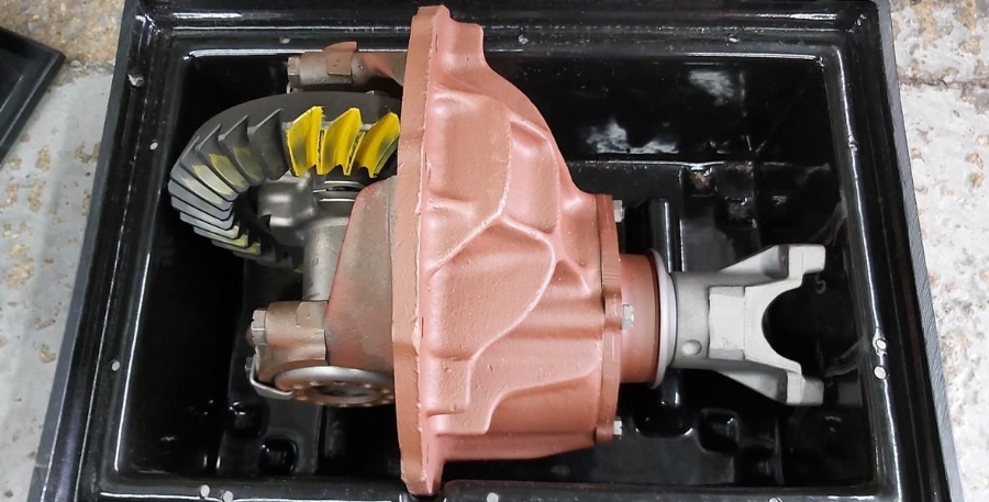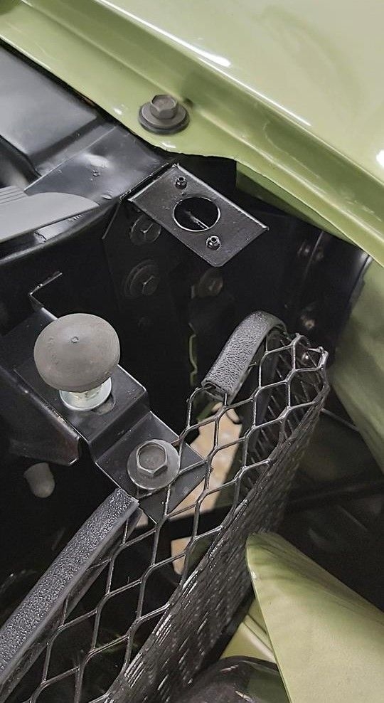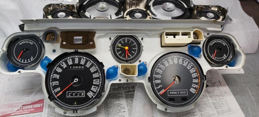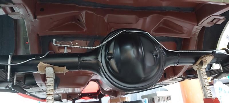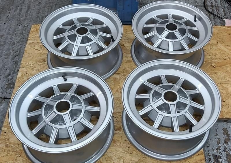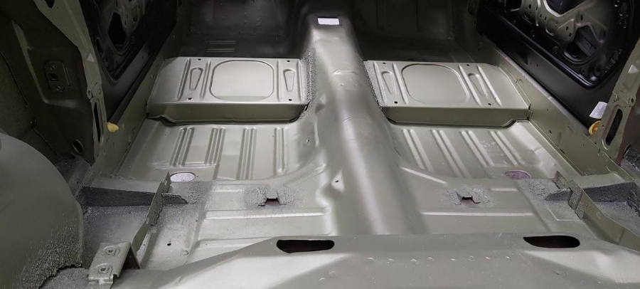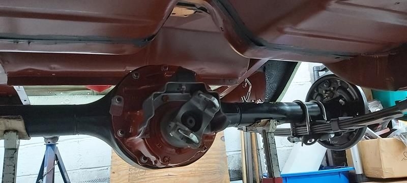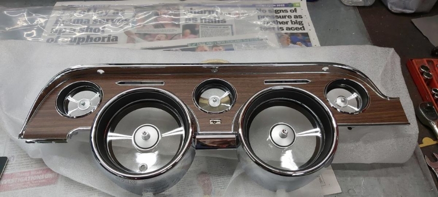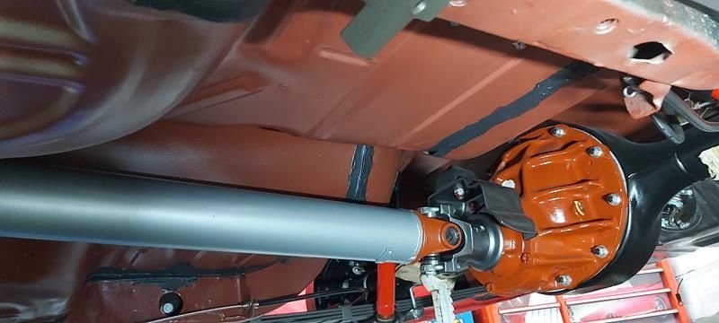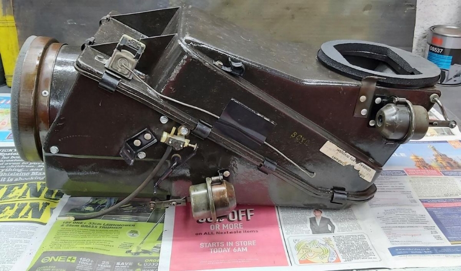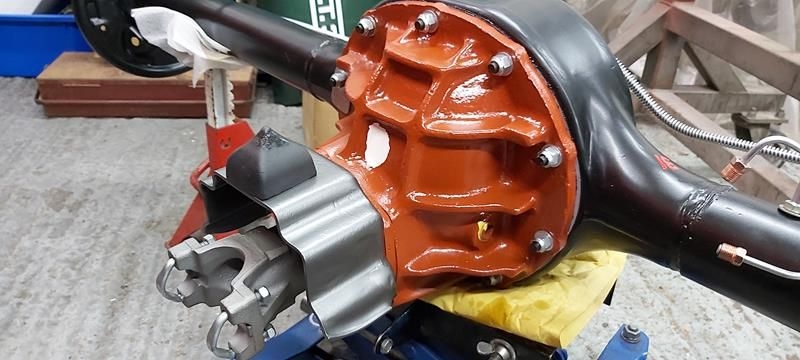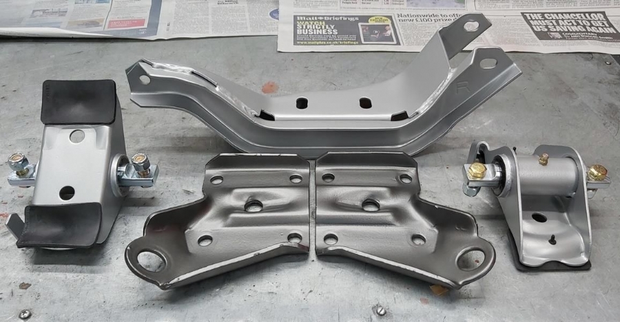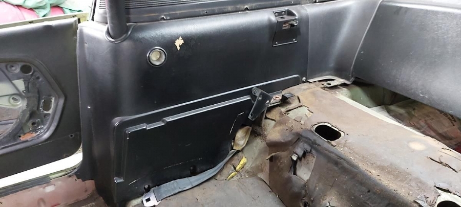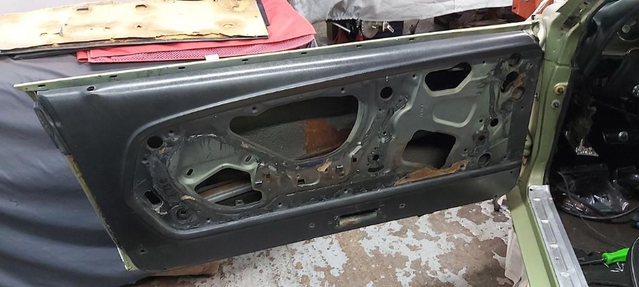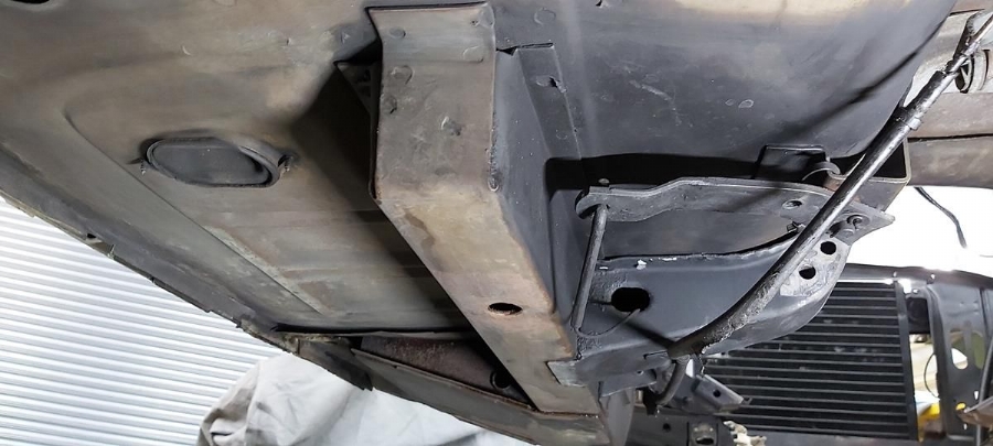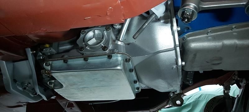 Undergoing an very detailed underbody refinish back to Factory specs. with any missing detail items found and refitted. Upon inspection of the cars external structure with some of the rear internal trim removed, evidence came to light of a very old accident and repair, probably completed when the car was quite new. A decision was made to re-repair local areas to a higher standard and make good other small sections of body originally marked by this old accident. This repair work has been completed and the cars shell now fully detailed and repainted in its correct Lime Gold.