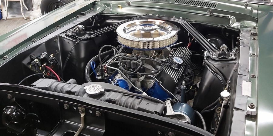 1967 Shelby GT350 in Dark Moss Green with black deluxe interior. Full numbers matching specification [body stampings and drive-train] with its original 289ci Hi-Po motor, 4-speed Top-Loader and 9inch heavy-duty rear axle all in place. The many rare Shelby American specific components original to the car are still with it.