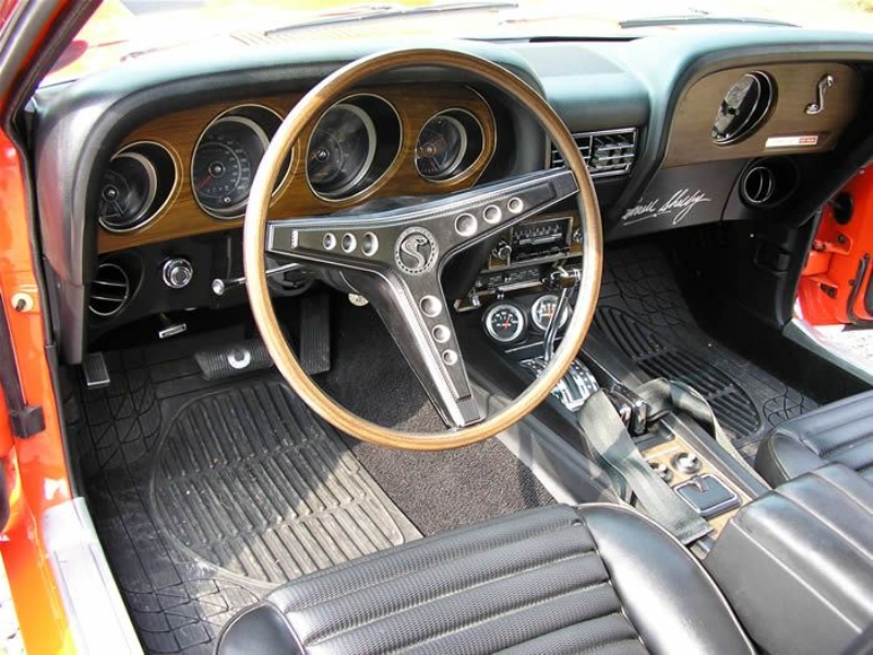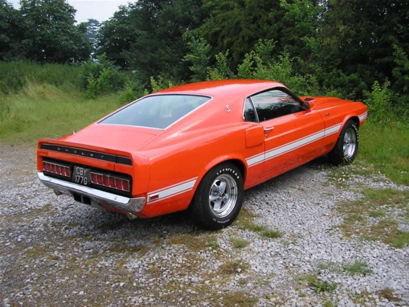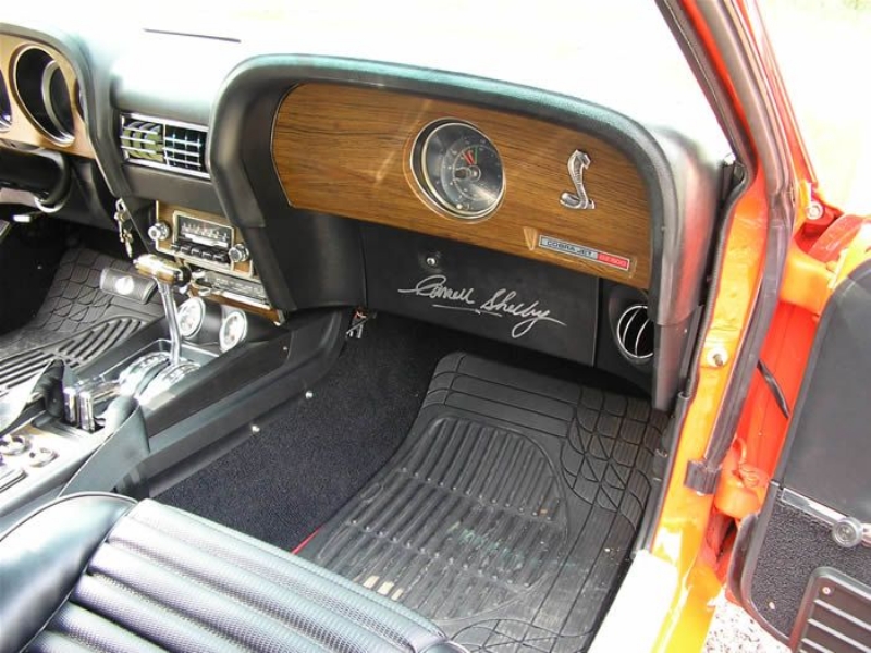 Competition Orange with black interior, believed to be originally a Shelby American pool car and used by Carroll Shelby himself.[He remembers driving the car] 428CJ engine tuned to 400hp by Knight Racing services, C6 automatic transmission, 3.00:1 9inch Traction-Loc axle, fully equipped and air-conditioned