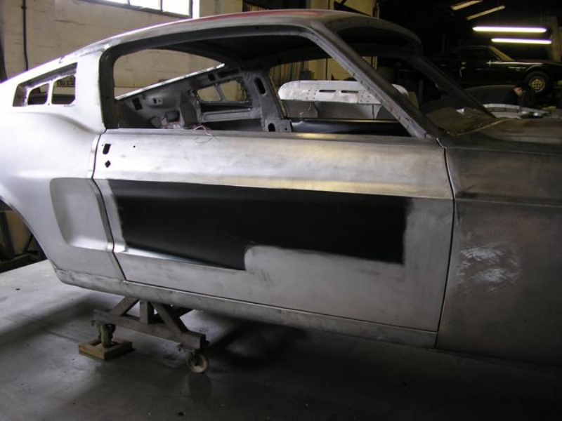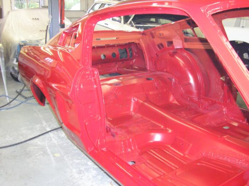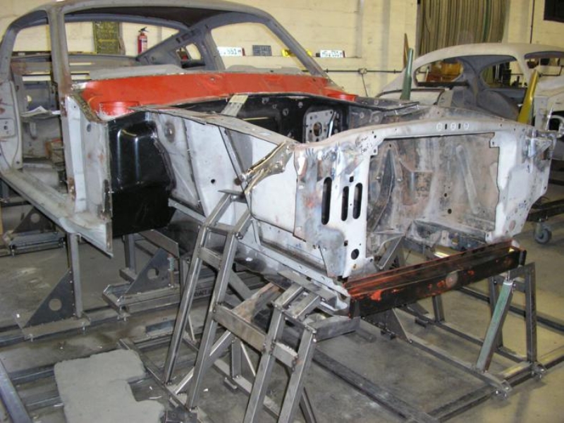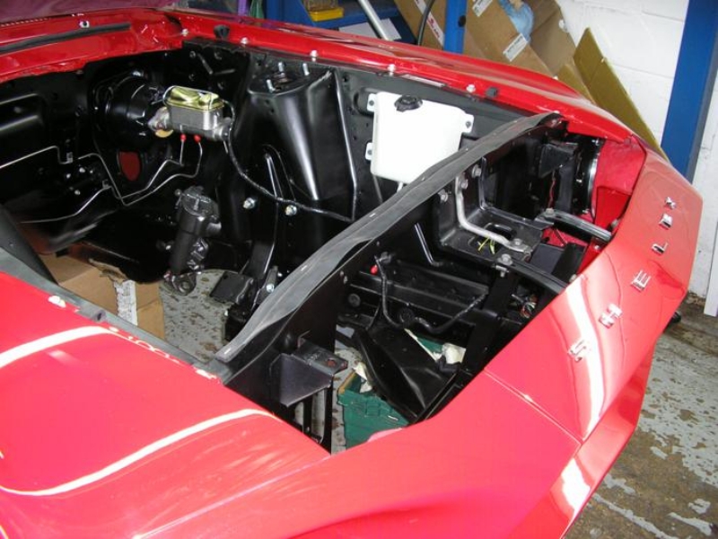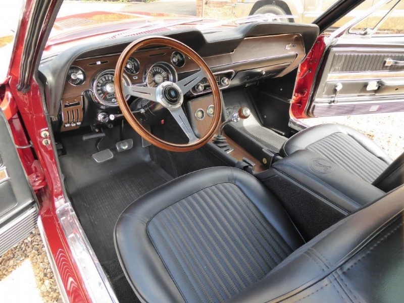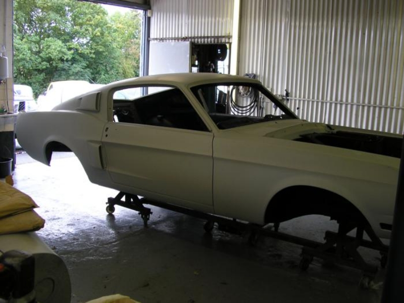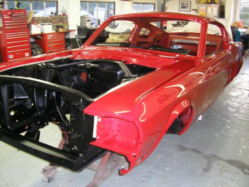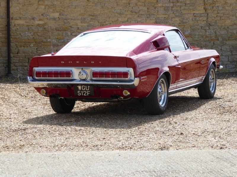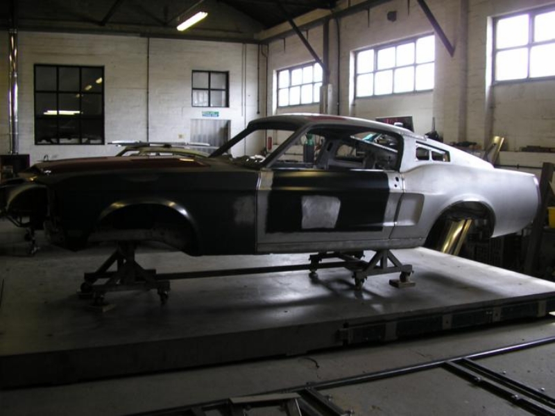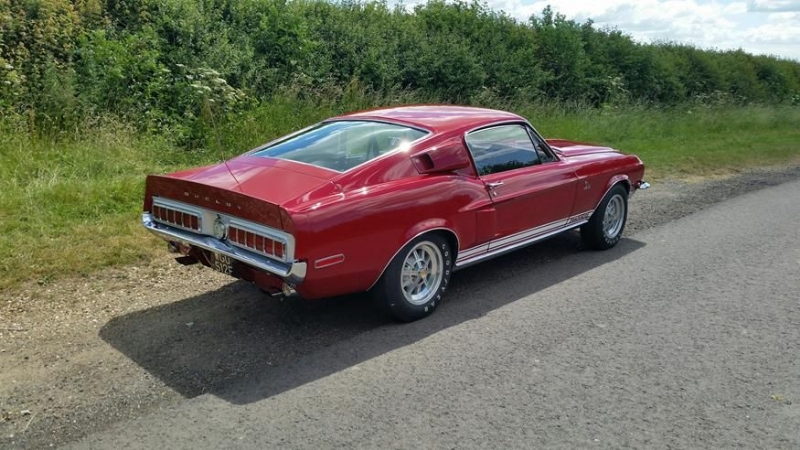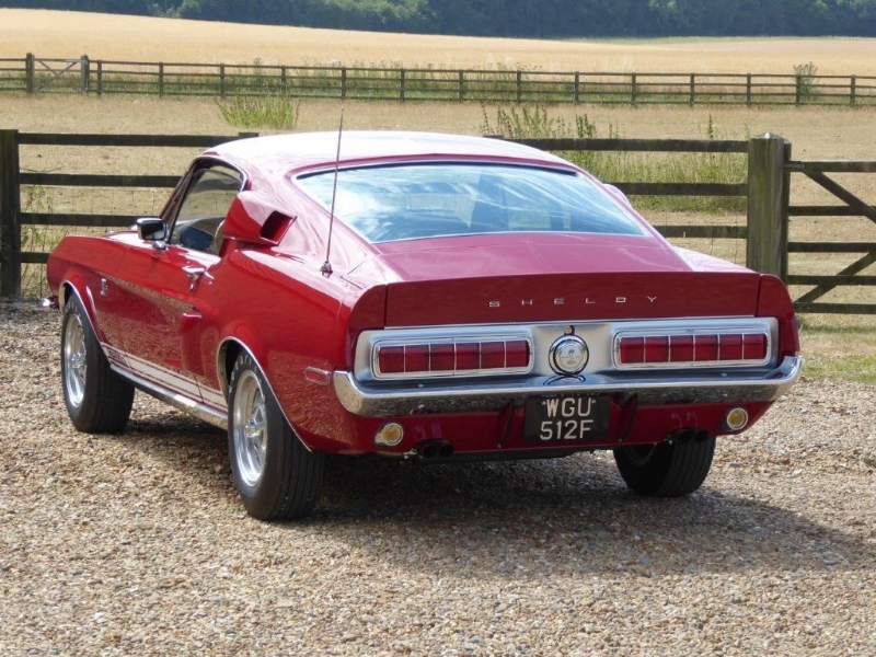 1968 Shelby GT500KR. a 3 owner, numbers matching 428CJ, 4-speed car in Red with Black interior. 39000 miles from new and just unearthed from the last owners garage. Not driven since 1993. This vehicles body and chassis restoration has proven to be one of the most complex i have been involved with. The specialist chassis jig and engineering work has been superbly undertaken by my ex-Aston Martin colleagues at ASR Motorbody Engineering. Body reconstruction now completed using Dragon Wheels own very accurate chassis jigs which with ASR's skilled work have yeilded a superb, highly authentic and carefully repaired shell. The bodyshell has been fully redetailed and repainted in the Factory original Candy Apple Red by Mike Hughes at Lone Pine. Reassembly of the shell now fully underway
