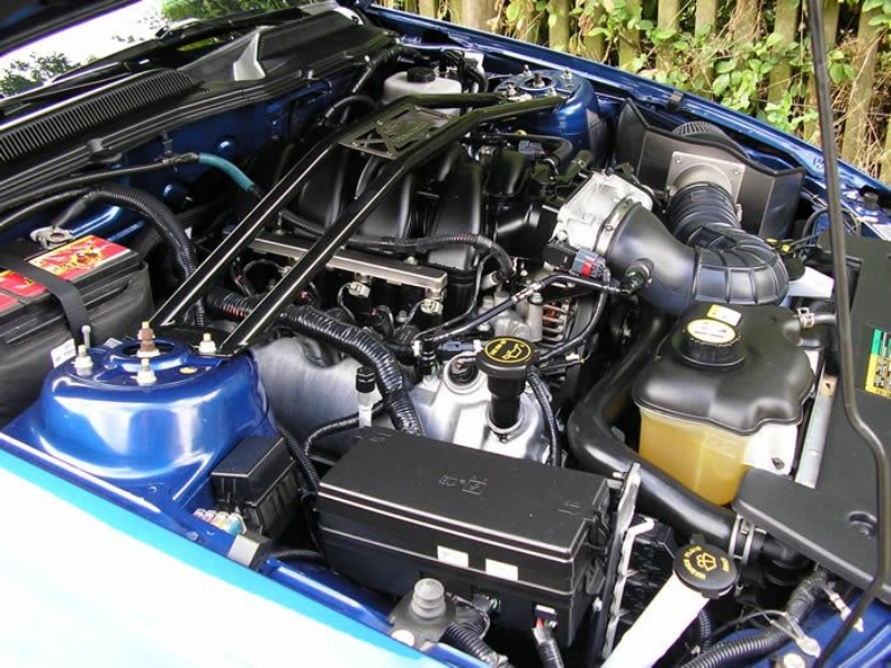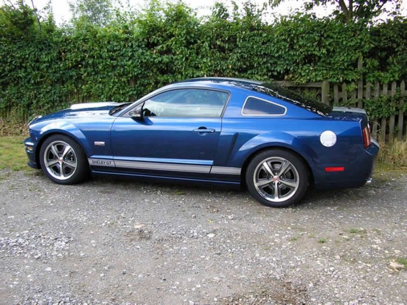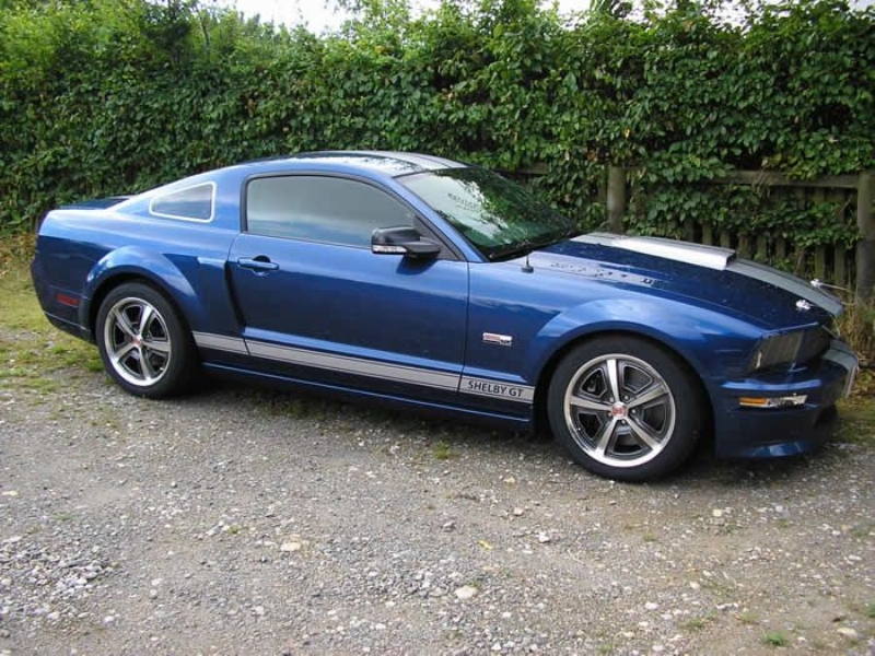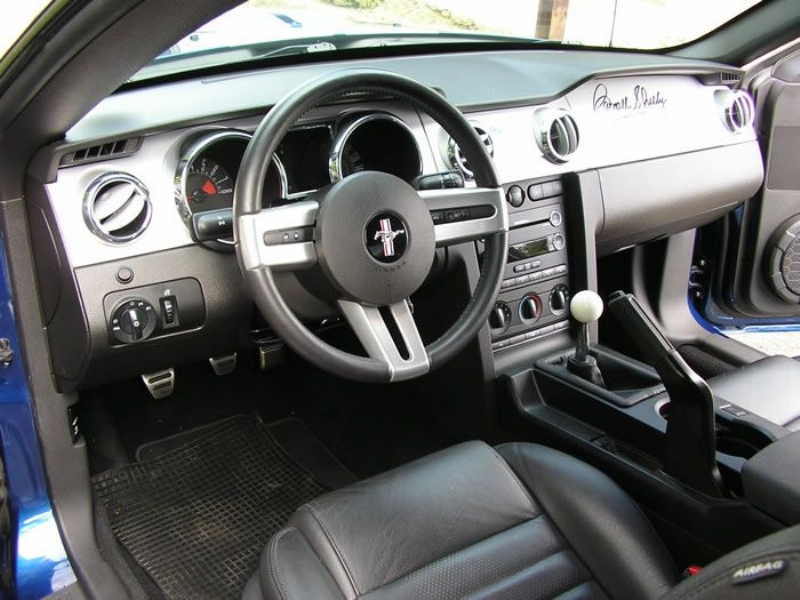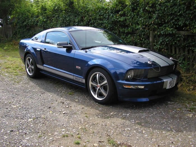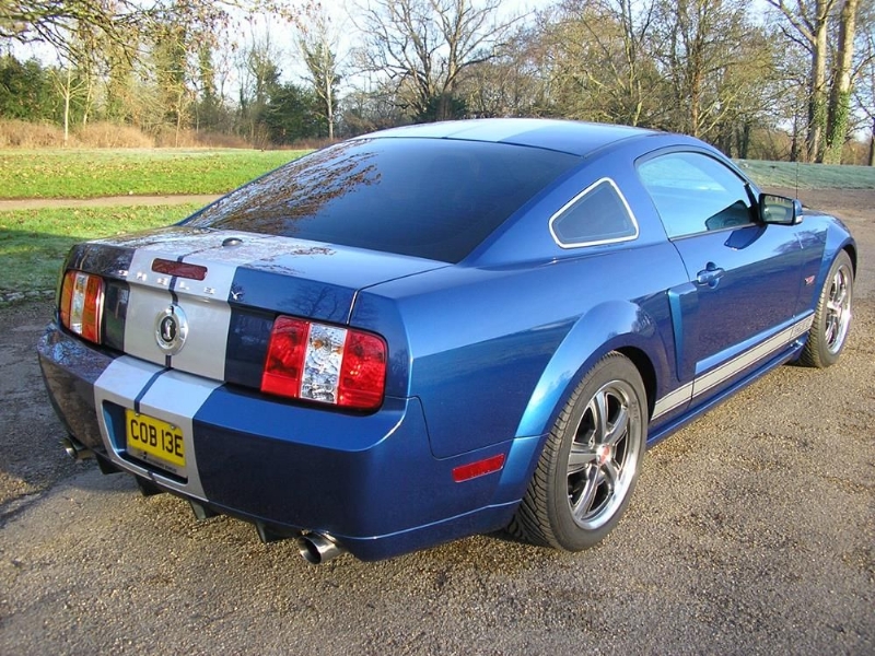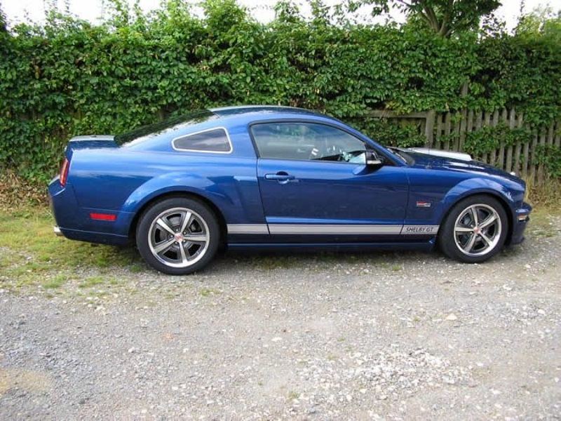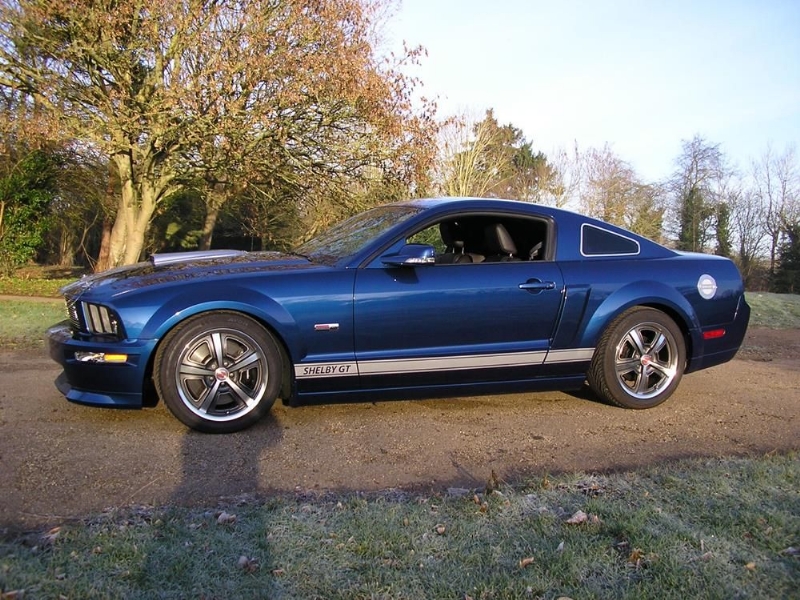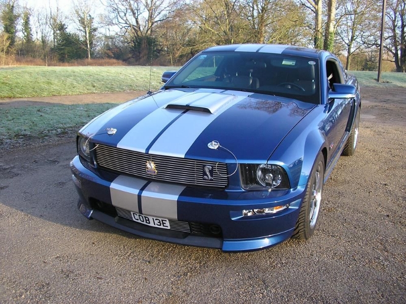 Genuine Shelby American Las Vegas built vehicle in Vista Blue with Charcoal leather. Shelby Factory specification includes uprated engine, lowered/stiffened/uprated suspension, modified/uprated exhaust system 3.55:1 LSD axle, front and rear facia changes with billet front grille, hood scoop with billet hood pins. Just completed exterior detailing with painted twin Shelby stripes and lower billet grille. Braking upgrade to GT500 14inch discs with Brembo calipers with cold air ducting system, SVT pads all round and Shelby CS69 wheels with Avon tyres. Vehicle has recently been to Roush UK who installed one of their M90 Supercharger conversions giving the vehicle a completely usable 450bhp. Vehicles passenger side dashboard facia has been hand signed by Carroll Shelby, Jack Roush and the 60’s Cobra Team Driver and personal friend Jack Sears. Jack also drove the car and enjoyed it greatly.