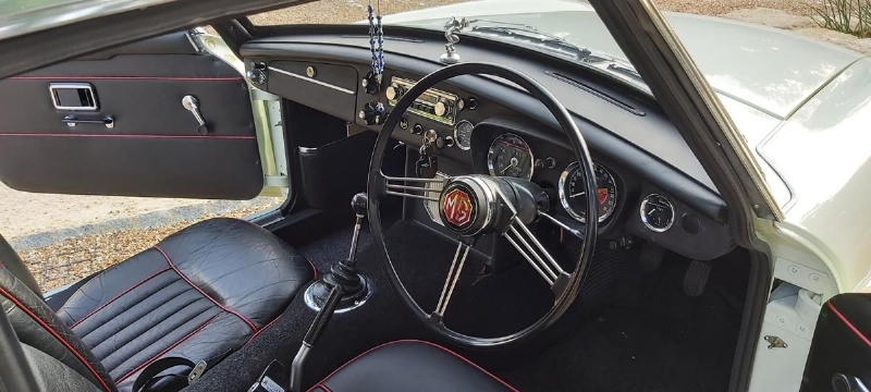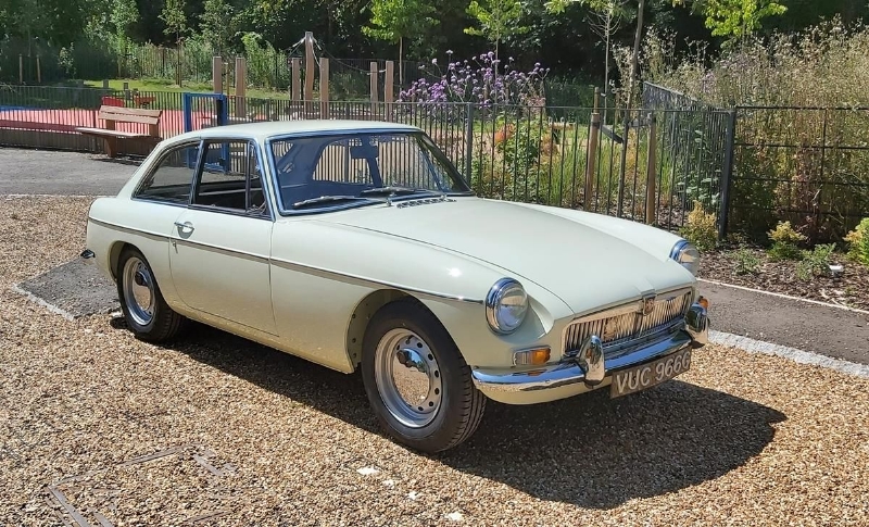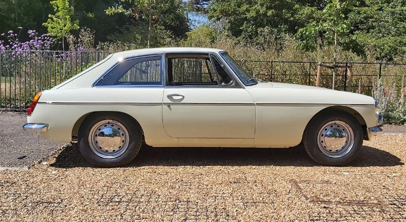 An original, unrestored standard specification 1968 MGB GT. Finished in Snowberry white with a black leather interior. It retains it early Dunlop steel wheels and all original the mechanical drivetrain components. The vehicles glass, entire interior trim and body structure are Factory original.