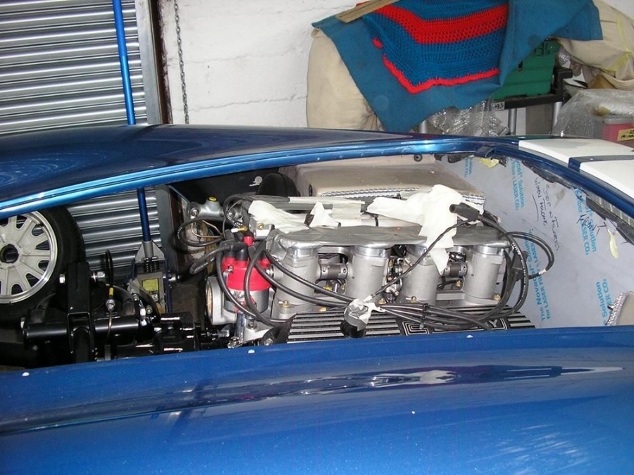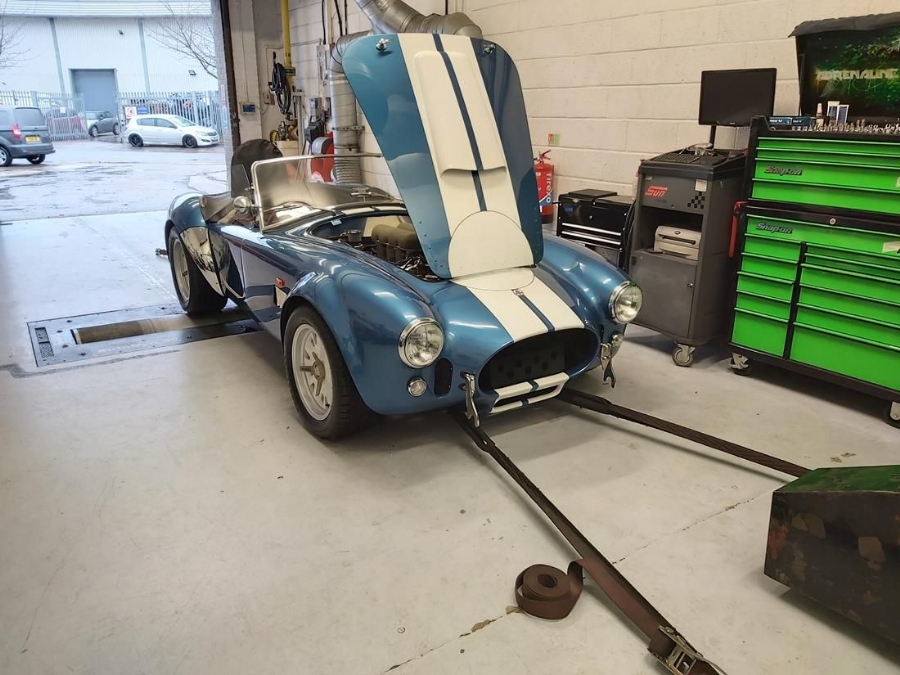 1996 AC MkIV Cobra, the very last aluminium bodied MkIV car built by Autokraft in 1996. This very detailed restoration project includes removal of the vehicles original aluminium skin and full chemical immersion cleaning of the bare chassis. Once totally clean the chassis was E-coated then powder-coated black, prior to the refitting of the aluminium skin. The drivetrain rebuild and upgrades include a Peter Knight/Dragon Wheels 331ci stroker motor which features a throttle body EFI system. The T5 manual transmission has been fitted with special high strength/high torque capacity wide ratio gear set, whilst the Salisbury LSD has a heavy duty 3.70:1 gear set installed. The specially developed EFI engine has been tested on Knight Racing Services engine dyno and yeilded the following figures; 380bhp @ 5200 rpm and 398 lbs/ft of torque @ 4500 rpm.