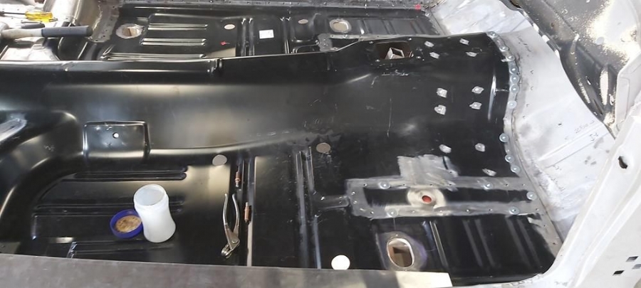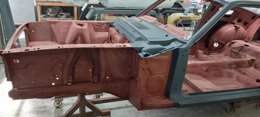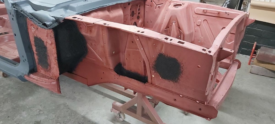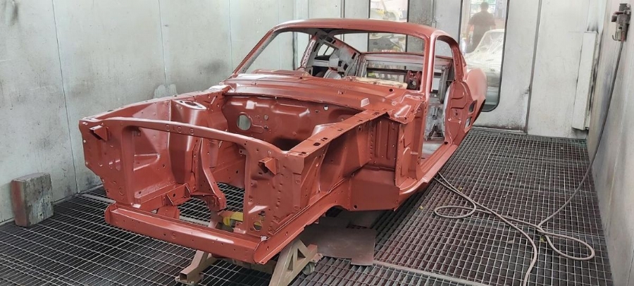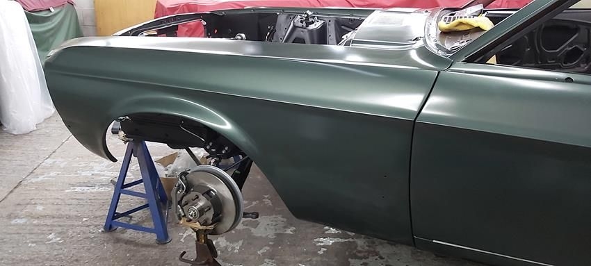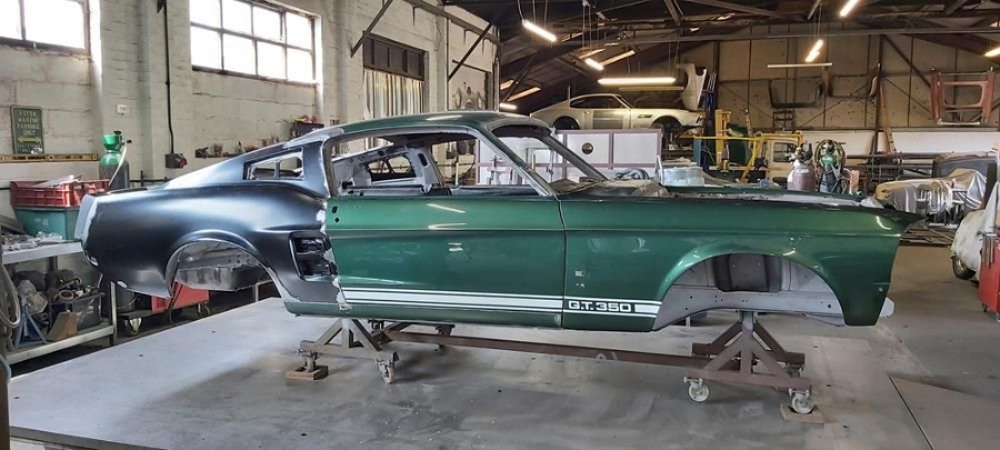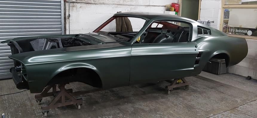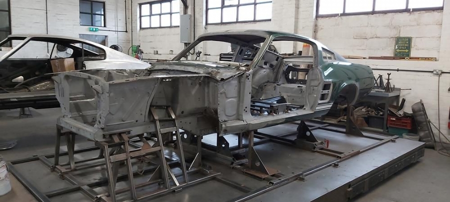 The car has now been fully disassembled, the bare shell blast cleaned and a very detailed and correct structural shell repair undertaken at ASR Ltd. The shell was fitted onto the companies engineering bed-plate and installed on my 67/68 Mustang detail chassis positioning jigs, where it can be very accurately fixed.