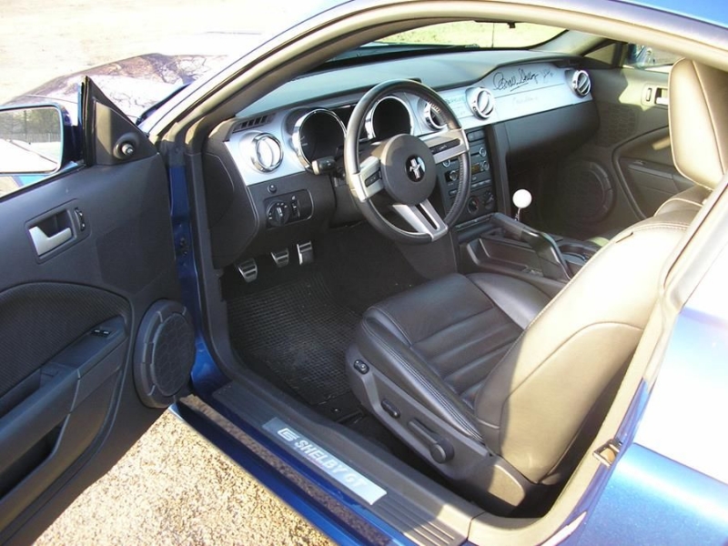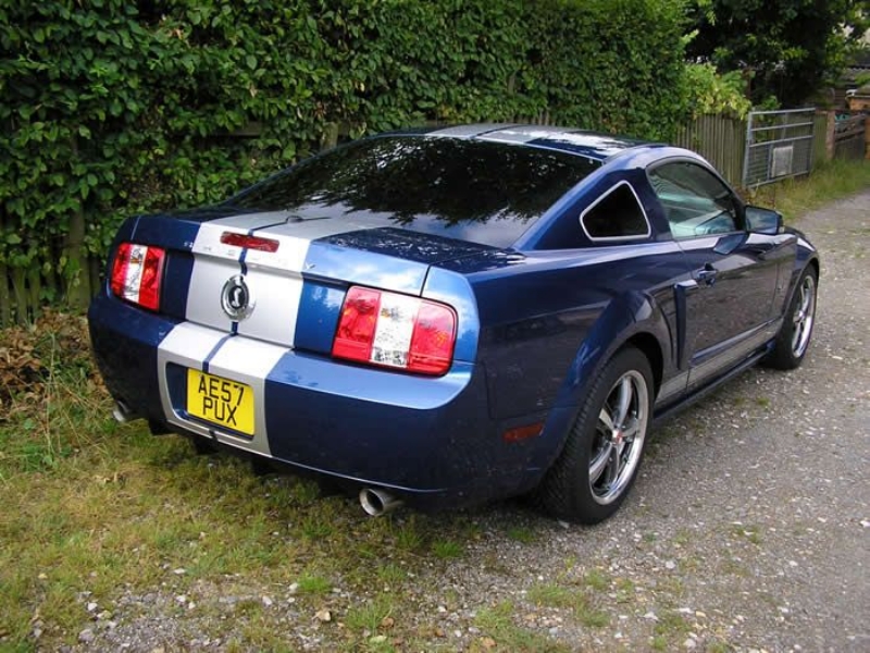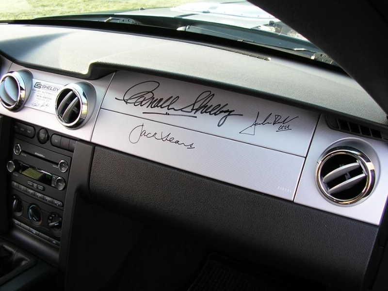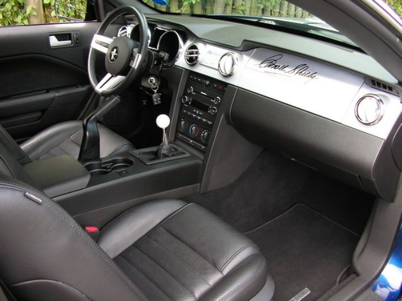 Genuine Shelby American Las Vegas built vehicle in Vista Blue with Charcoal leather. Shelby Factory specification includes uprated engine, lowered/stiffened/uprated suspension, modified/uprated exhaust system 3.55:1 LSD axle, front and rear facia changes with billet front grille, hood scoop with billet hood pins. Just completed exterior detailing with painted twin Shelby stripes and lower billet grille. Braking upgrade to GT500 14inch discs with Brembo calipers with cold air ducting system, SVT pads all round and Shelby CS69 wheels with Avon tyres. Vehicle has recently been to Roush UK who installed one of their M90 Supercharger conversions giving the vehicle a completely usable 450bhp. Vehicles passenger side dashboard facia has been hand signed by Carroll Shelby, Jack Roush and the 60’s Cobra Team Driver and personal friend Jack Sears. Jack also drove the car and enjoyed it greatly.