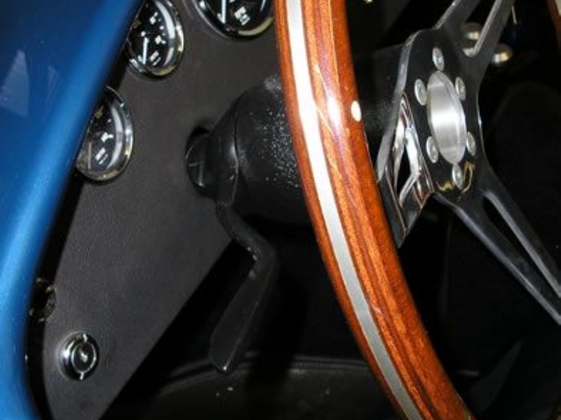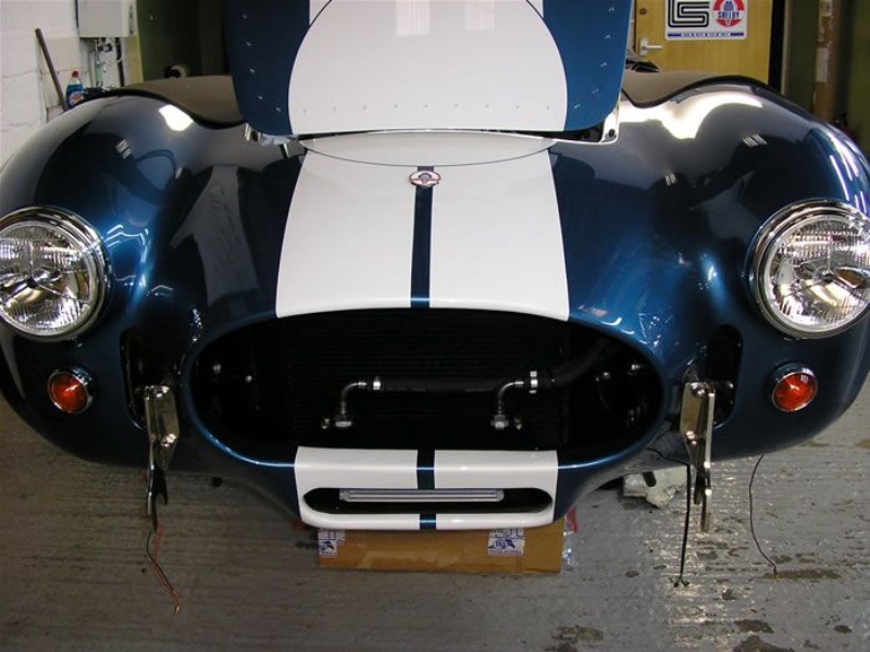 Original Factory Lightweight reimported from the USA and subjected to a complete "nut and bolt" concours restoration. Repainted in Guardsmen Blue with white stripes and roundals. Vehicle features, rivetted bonnet, flat dash with Smiths instruments and early type gear lever. Early style steering column and hidden heater controls and heated seats. Retrim in black leather and Wilton carpets with trimmed and detailed boot area. Specially developed emission legal 331ci small block Ford developing 385bhp/387lbs/ft with twin catalytic convertors mated to BWT5 transmission and 3.54:1 LSD. Car rides on15inch Halibrands with CR6ZZ Avon tyres. Winner of the 2012 AC Owners Club National Day Class Concours.