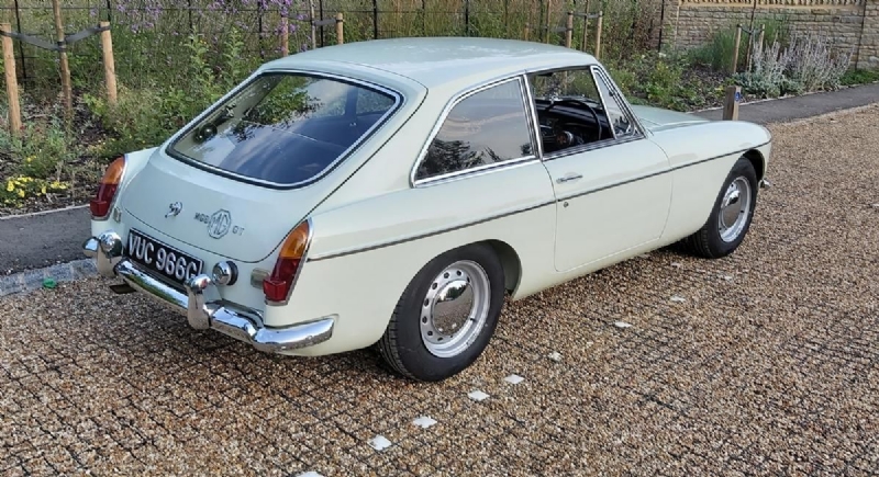 An original, unrestored standard specification 1968 MGB GT. Finished in Snowberry white with a black leather interior. It retains it early Dunlop steel wheels and all original the mechanical drivetrain components. The vehicles glass, entire interior trim and body structure are Factory original.
